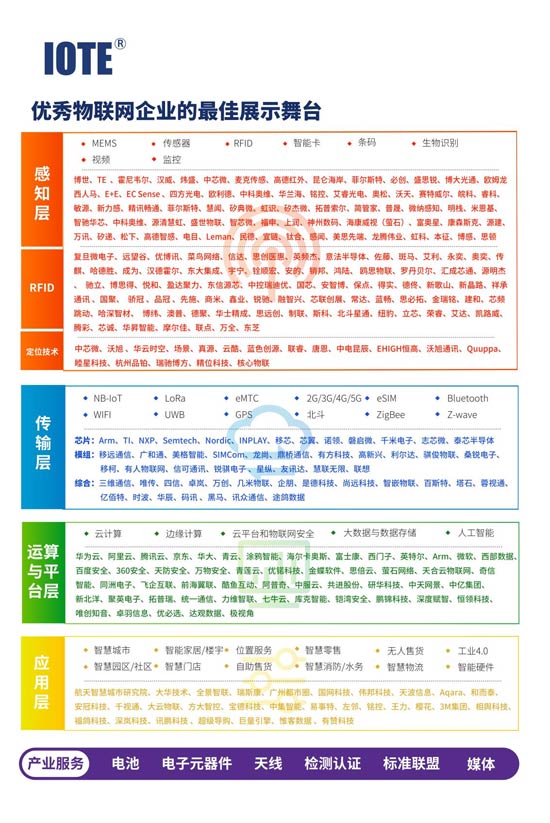 3、完整產業鏈,采購更容易。涵蓋物聯網感知層、網絡傳輸層、運算與平臺層、應用層。還有以應用集成導向的同期展,聚焦:5G、新基建、智慧城市、工業物聯網、等物聯網核心應用,一站式展示物聯網產業最新技術、產品、方案、企業。