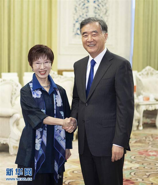 5月13日,中共中央政治局常委、全國政協(xié)主席汪洋在北京會見中國國民黨前主席、中華青雁和平教育基金會董事長洪秀柱率領的臺灣各界人士代表團。 新華社記者 李濤 攝