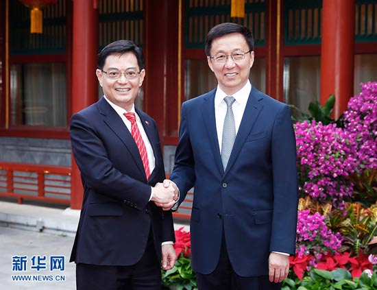 韓正會(huì)見新加坡副總理兼財(cái)政部長王瑞杰