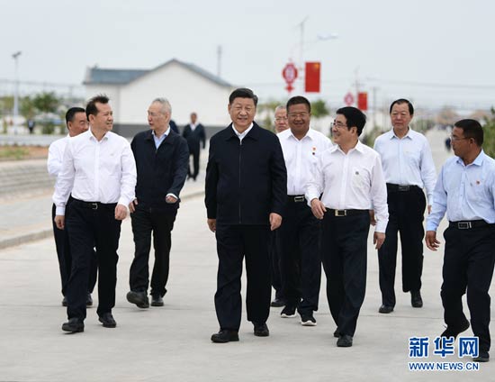8月21日上午,正在甘肅考察的中共中央總書記、國家主席、中央軍委主席習近平來到古浪縣黃花灘生態移民區富民新村,看望從山區生態移民易地扶貧搬遷的鄉親們。 新華社記者 謝環馳 攝