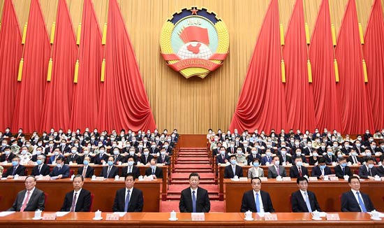 5月27日,中國人民政治協(xié)商會議第十三屆全國委員會第三次會議在北京閉幕。這是習(xí)近平、李克強、栗戰(zhàn)書、王滬寧、趙樂際、韓正、王岐山等在主席臺就座。 新華社記者 謝環(huán)馳 攝
