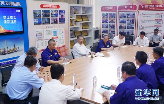 7月19日至22日,中共中央政治局常委、中央紀(jì)委書記趙樂際到江蘇調(diào)研。這是7月20日,趙樂際在徐工集團徐州重型機械有限公司與職工代表座談交流。 新華社記者 張領(lǐng) 攝