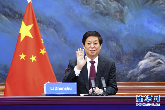5月25日,全國人大常委會(huì)委員長栗戰(zhàn)書在北京人民大會(huì)堂以視頻方式同古巴全國人民政權(quán)代表大會(huì)主席拉索舉行會(huì)談。新華社記者 燕雁 攝