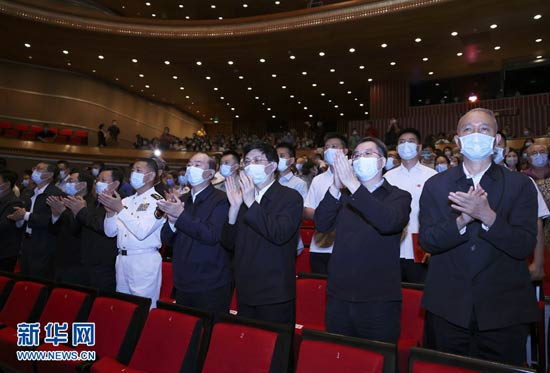 為慶祝中國共產黨成立100周年,國家大劇院精心復排新制作的經典民族歌劇《黨的女兒》7月13日至18日精彩亮相。18日晚,中共中央政治局常委、中央書記處書記王滬寧觀看演出。新華社記者 劉衛兵 攝