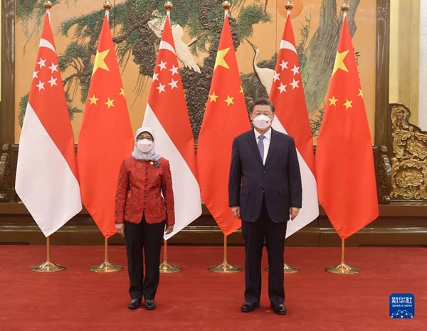 習(xí)近平會(huì)見新加坡總統(tǒng)哈莉瑪