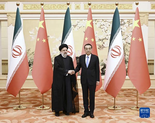 2月14日,國務院總理李克強在北京人民大會堂會見來華進行國事訪問的伊朗總統萊希。新華社記者 燕雁 攝