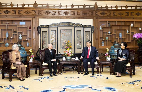 2月24日,國家主席習近平和夫人彭麗媛在北京釣魚臺國賓館養源齋親切會見柬埔寨國王西哈莫尼和太后莫尼列。