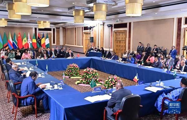 非盟輪值主席、科摩羅總統阿扎利,中非合作論壇非方共同主席國、塞內加爾總統薩勒,非洲次區域組織代表贊比亞總統希奇萊馬、布隆迪總統恩達伊施米耶、吉布提總統蓋萊、剛果(布)總統薩蘇、納米比亞總統根哥布、乍得總理凱布扎博、利比亞總統委員會副主席庫尼、尼日利亞副總統謝蒂馬,以及非盟委員會代表穆昌加等出席。