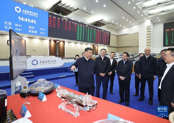 11月28日至12月2日,中共中央總書記、國家主席、中央軍委主席習近平在上海考察。這是11月28日下午,習近平在上海期貨交易所考察。