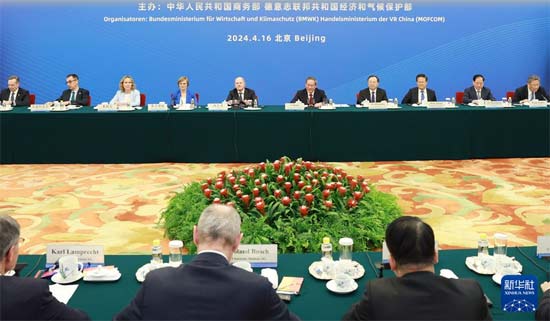 4月16日下午,國務院總理李強在北京人民大會堂和德國總理朔爾茨共同出席中德經濟顧問委員會座談會,同與會企業家交流。