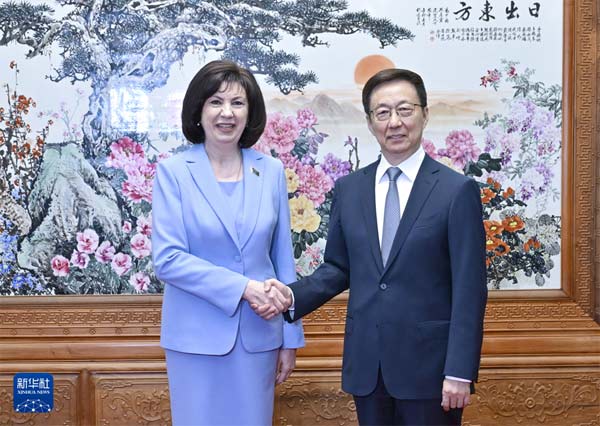 5月29日,國家副主席韓正在北京會見白俄羅斯國民會議共和國院主席科恰諾娃。