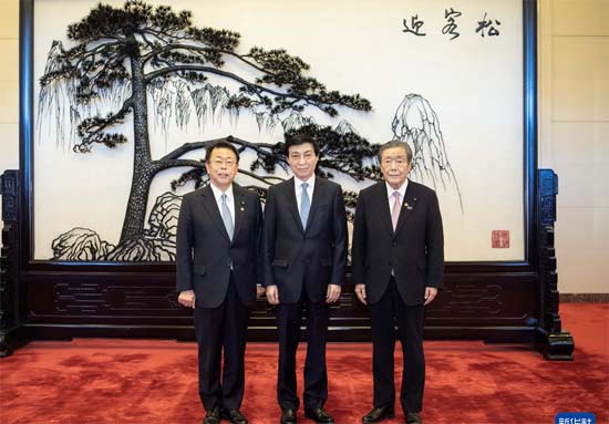 1月14日,中共中央政治局常委、全國政協主席王滬寧在北京會見由日本自民黨干事長森山裕、公明黨干事長西田實仁率領的日本執政黨代表團。